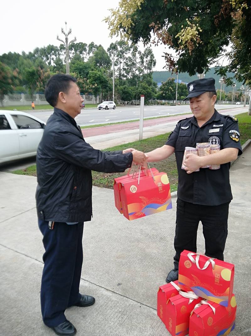國(guó)慶巧逢中秋節(jié),在中國(guó)傳統(tǒng)節(jié)日到來(lái)之際,公司管理層在節(jié)前到崗慰問(wèn)所有隊(duì)員,送上中秋月餅及祝福,對(duì)他們及家人致以節(jié)日的問(wèn)候。